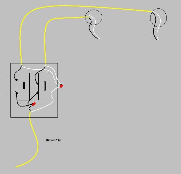 How to Wire Two Light Switches With 2 lights with One Power Supply diagram