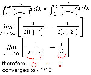 I used u-sub to get the general integral of the problem and that I got -1/ 2(1+ x^2) dx that is where I got the third line numbers from. U = 1+ x^2 du= 2x dx 1/2 du = x dx