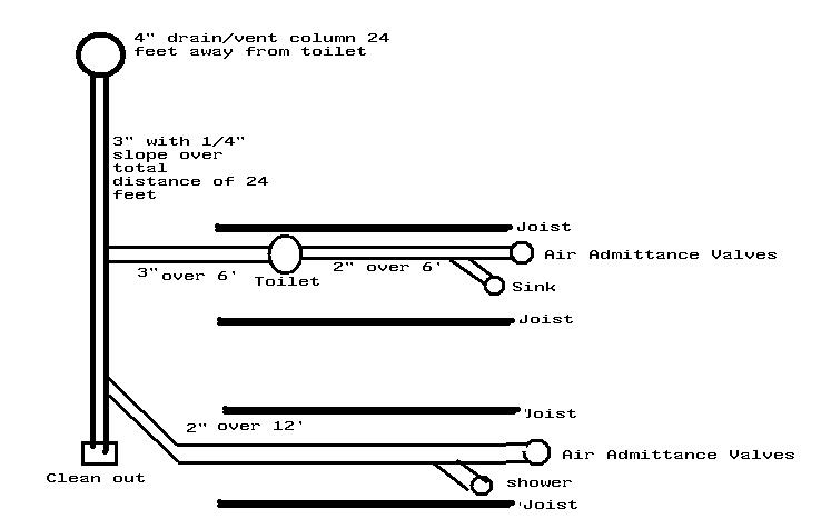 Our kitchen sink has two 2" ABS drains straight through the floor, where I assume they come together. The basement is finished, so I don't have access below the kitchen floor. The sink is on an island, so there is no way to vent through the roof. The original plumbing used a loop just below...