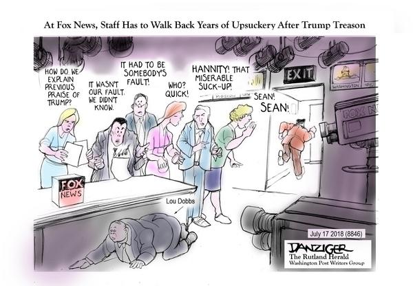 The Dufus is propped up by his base of supporters and elected republican sycophants who quake in their boots at the idea of being seen going against him. I bet they are wondering how that base will react to the disgusting performance in Helsinki, and until they do know, they will be silent, but the next few days will be intriguing as he returns home to face the fallout. Meanwhile Mueller has DETAINED another Russian spy, this time on American soil and she has been indicted. A homecoming gift if you will.